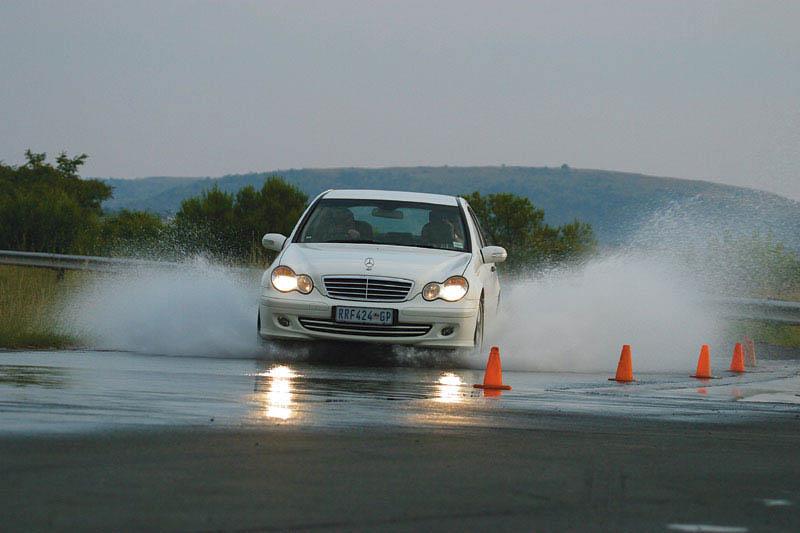 А самым неожиданным для нас стало то, что все взятые напрокат автомобили-агрегатоносители оказались с правым рулем: в ЮАР — левостороннее движение! И в первый день, по ходу «пристрелочных» заездов на незнакомых трассах, каждый из нас то и дело пускал левые колеса машины по обочине. Потом привыкли... Для оценки управляемости и сопротивления аквапланированию на прямой мы использовали Audi A4, остальные тесты нам помог выполнить Mercedes C180 Kompressor.